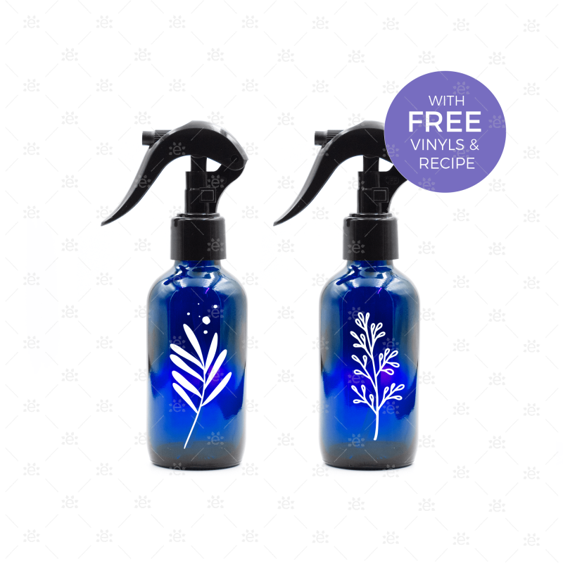 120ml Blue Spray Bottle (2pk) with Decorative Vinyl Label & Recipes