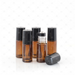 Contents: 5 x 5ml amber bottles with black cap and premium new style stainless steel rollerballs