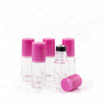Contents: 5 x 5ml clear bottles with tutu (pink) caps and new style stainless steel rollerballs