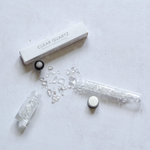 Contents: 10g (enough to part fill 3 x 10ml roller bottles) boxed clear quartz gemstone tube