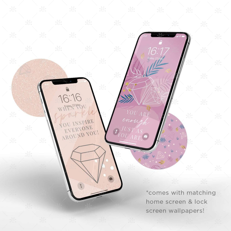 Simply download them onto your cellphone and choose which one you would like to set as your lock screen and then choose one for your home screen as well if you like. Store them safely on your phone and change them up as you feel inspired!