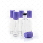 Contents: 5 x 10ml clear bottles with amethyst (purple) cap and new style stainless steel rollerballs