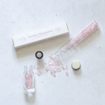 Contents: 10g (enough to part fill 3 x 10ml roller bottles) boxed rose quartz gemstone tube