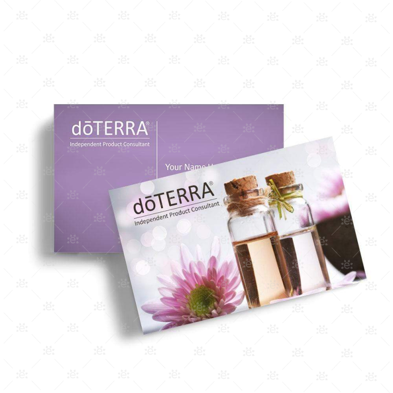 Our dōTERRA® approved business cards are produced using 350 gsm coated card stock with a matte front, silk-coated back and a durable feel. Matte varnish has a rich texture for a classic and elegant look. They are available in a 2 sided option, or a 4 sided option which includes a tear off card to collect your customer's details. The 4 sided folding cards are perforated in the middle for easy separation.