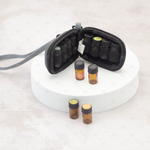 The hardshell construction protects your vials from damage or degradation from light and the sturdy elastic straps inside secures them firmly in place. Convenient for travel and for quick demonstration or ideal for sampling . The case has a wristlet strap for ease of holding for when you need to pick a bottle out on-the-go, or ease of handling for a child.